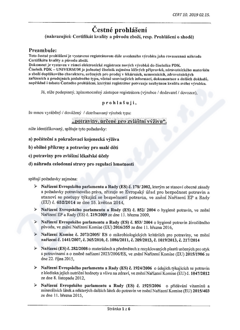 Obsahuje: POTRAVINY PRO ZVLÁŠTNÍ LÉKAŘSKÉ ÚČELY (PZLÚ) (ČESKÁ ATC SKUP