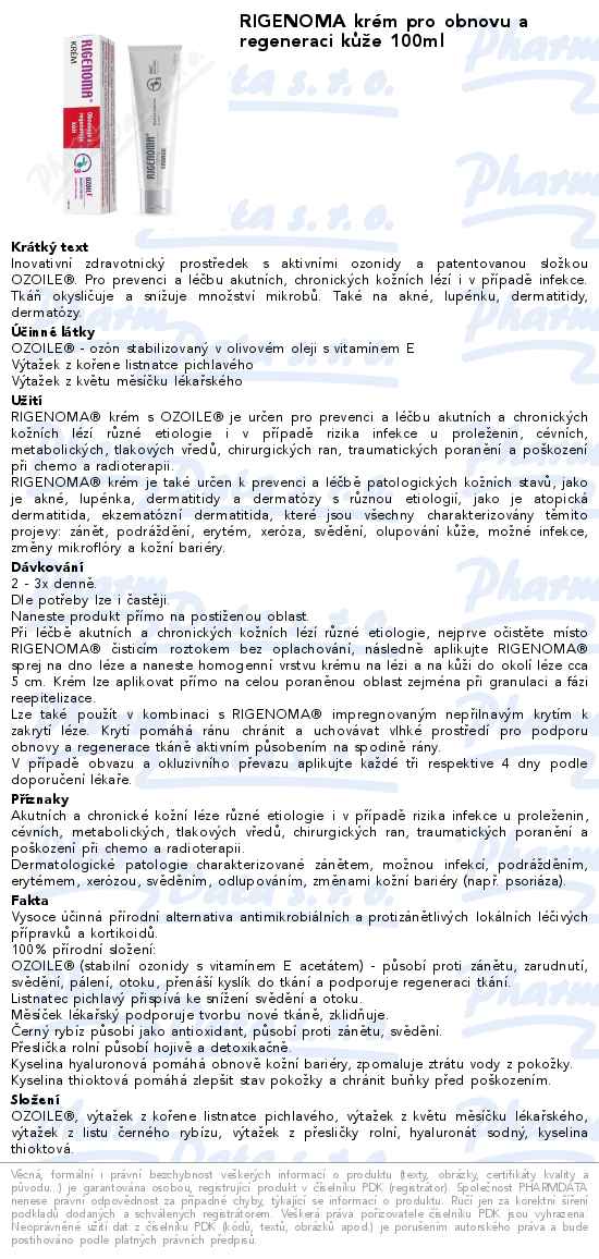RIGENOMA krém pro obnovu a regeneraci kůže 100ml