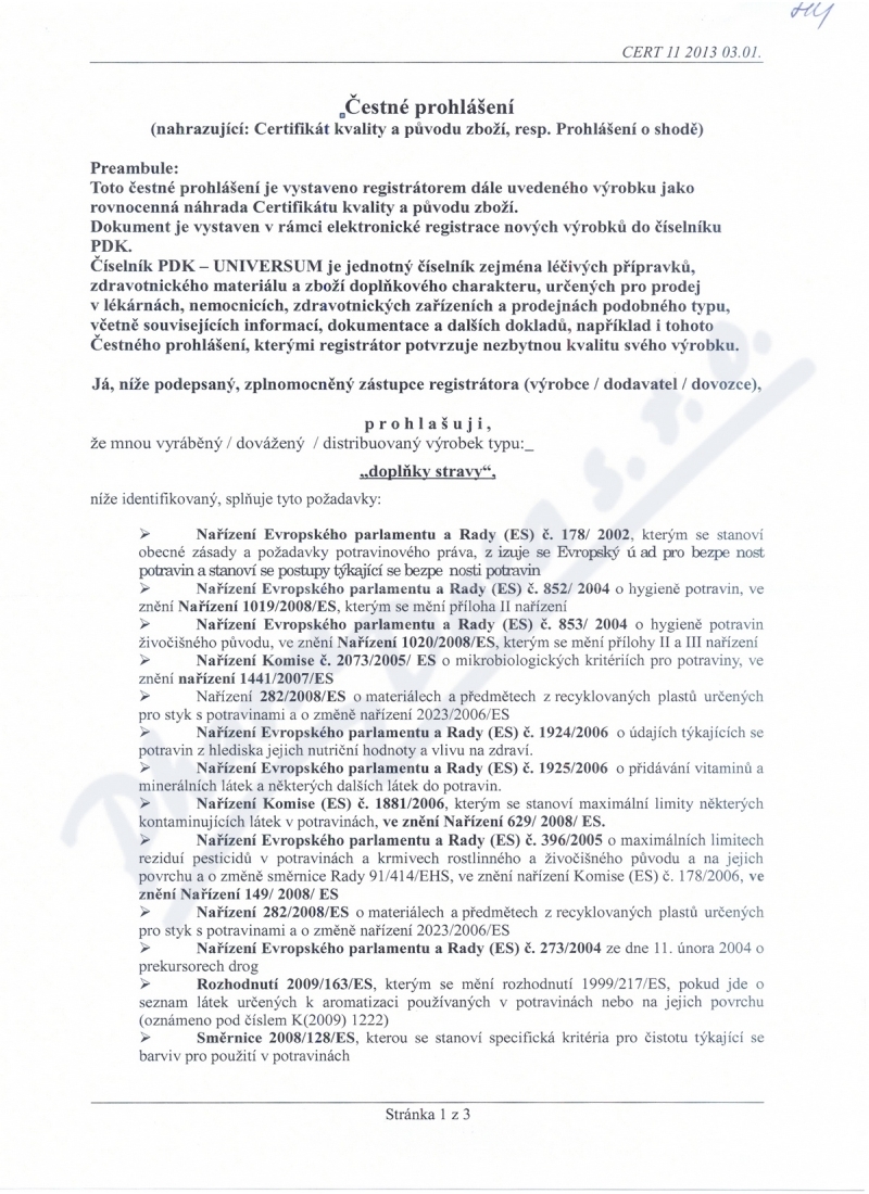 3 strany čestného prohlášení: strana 1, strana 2, strana 3,