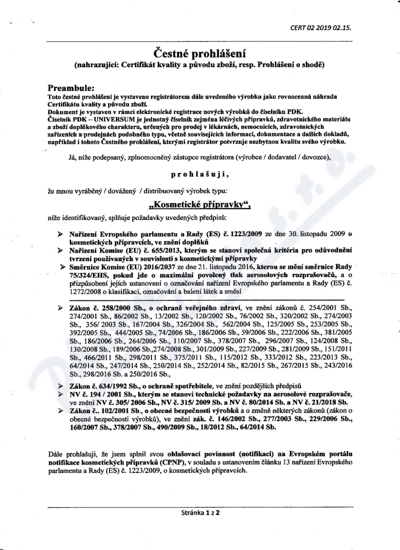2 strany čestného prohlášení: strana 1, strana 2,