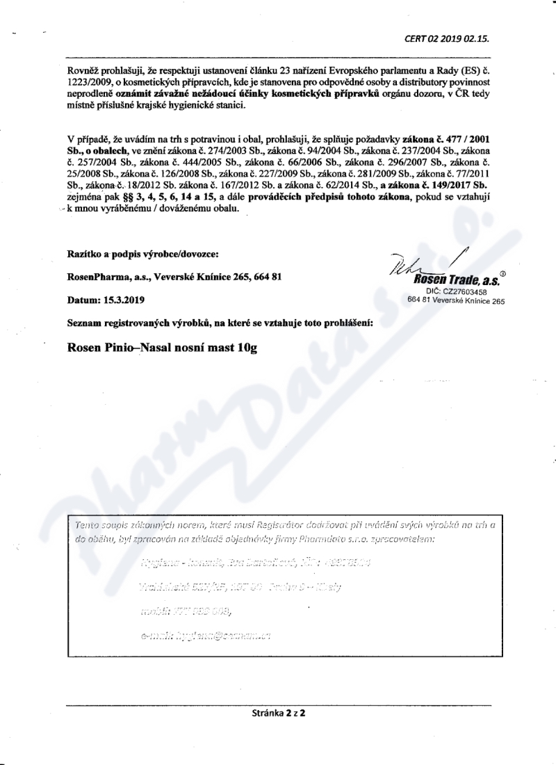 Výrobce: RosenPharma a.s., Veverské Knínice, Ostrovačice