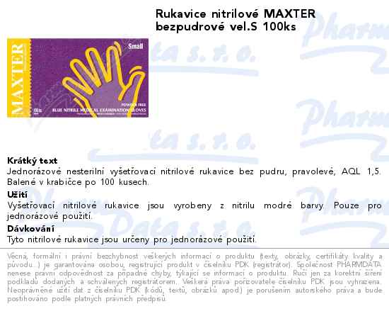 Rukavice nitrilové MAXTER bezpudrové vel.S 100ks
