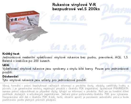 Rukavice vinylové V-R bezpudrové vel.S 200ks