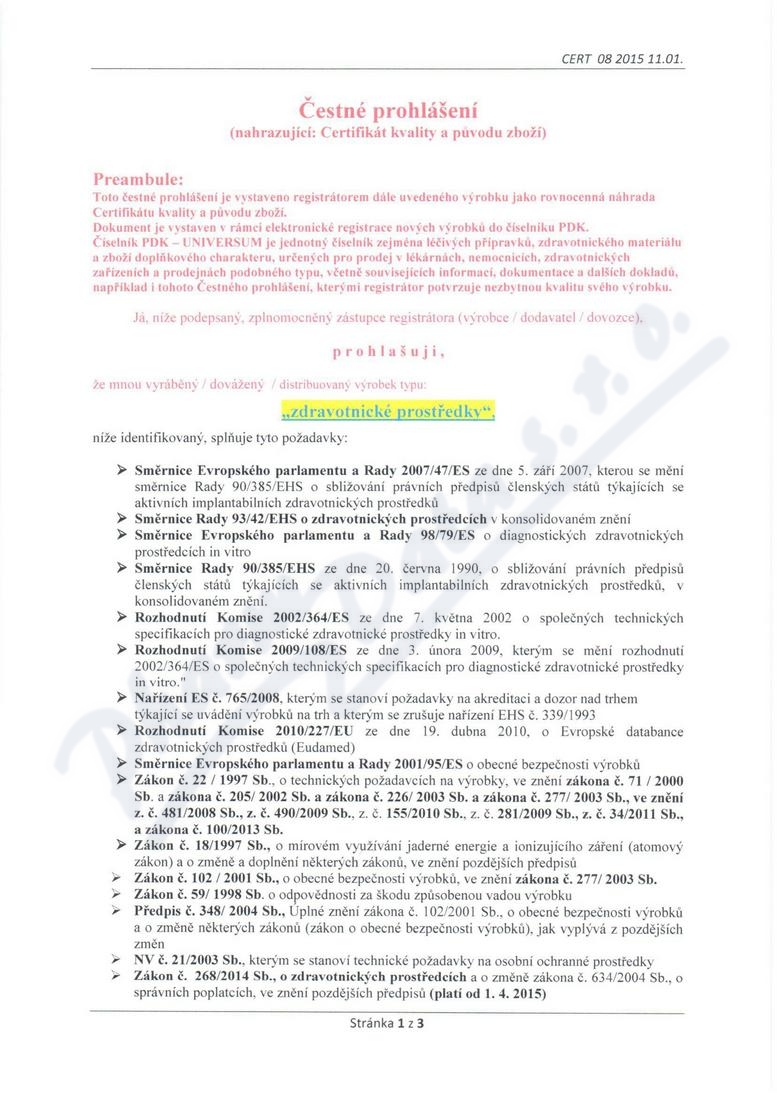 3 strany čestného prohlášení: strana 1, strana 2, strana 3,