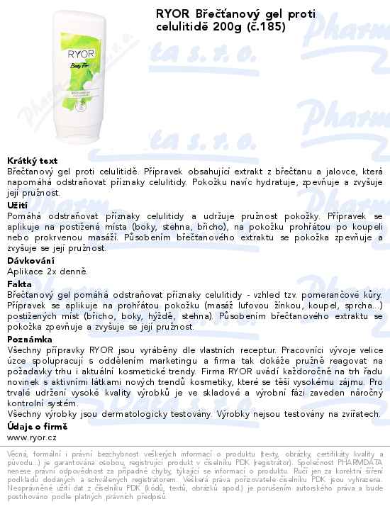 RYOR Břečťanový gel proti celulitidě 200g (č.185)