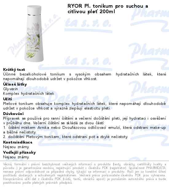 RYOR Pl. tonikum pro suchou a citlivou pleť 200ml