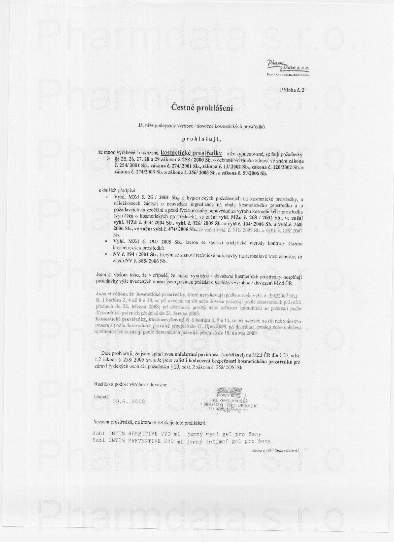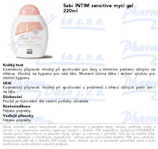 SABI Intim SENSIT. jemný mycí gel ženy 220ml PAVES