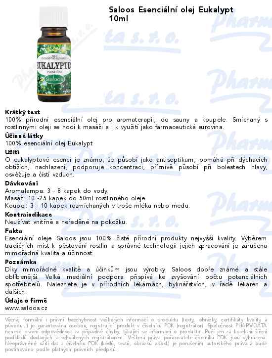 Saloos Esenciální olej Eukalypt 10ml