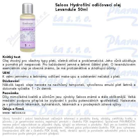 Saloos Hydrofilní odličovací olej Levandule 50ml