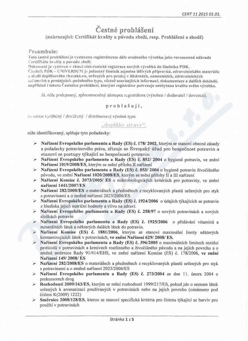 5 strany čestného prohlášení: strana 1, strana 2, strana 3, strana 4, strana 5,