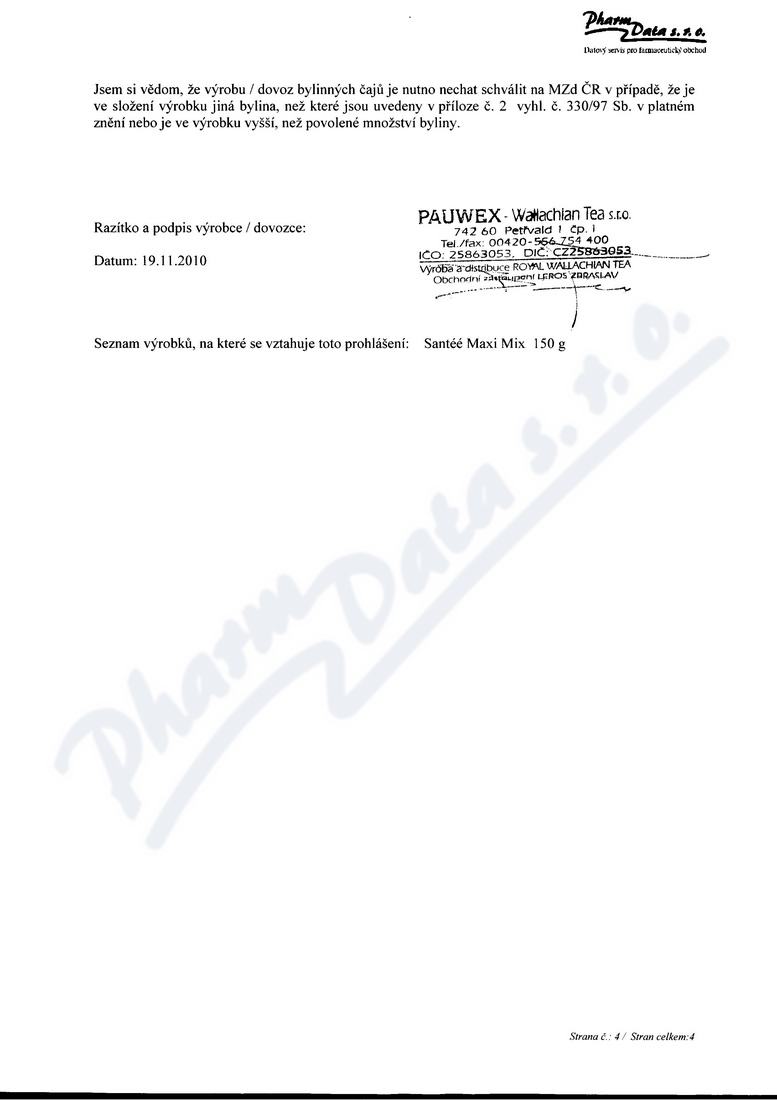 Výrobce: PAUWEX WALACHIAN TEA S.R.O.