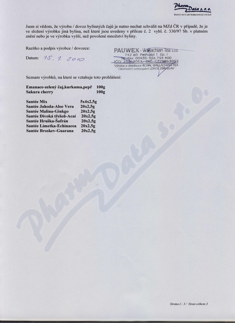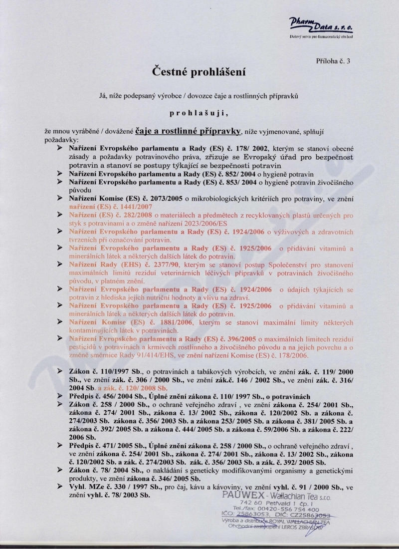 Výrobce: PAUWEX WALACHIAN TEA S.R.O.