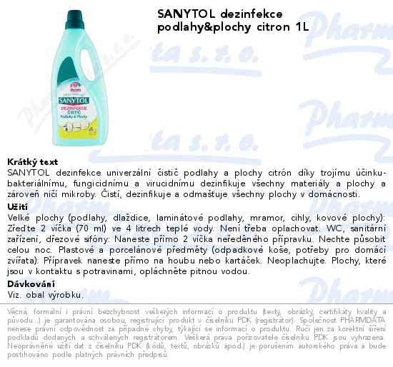 SANYTOL dezinfekce podlahy&plochy citron 1L