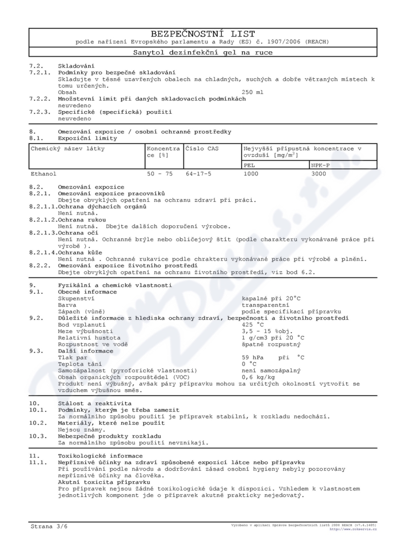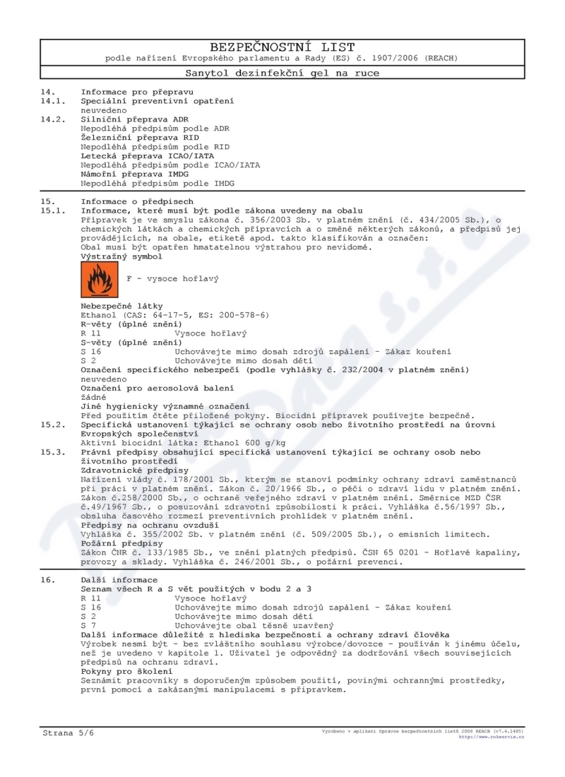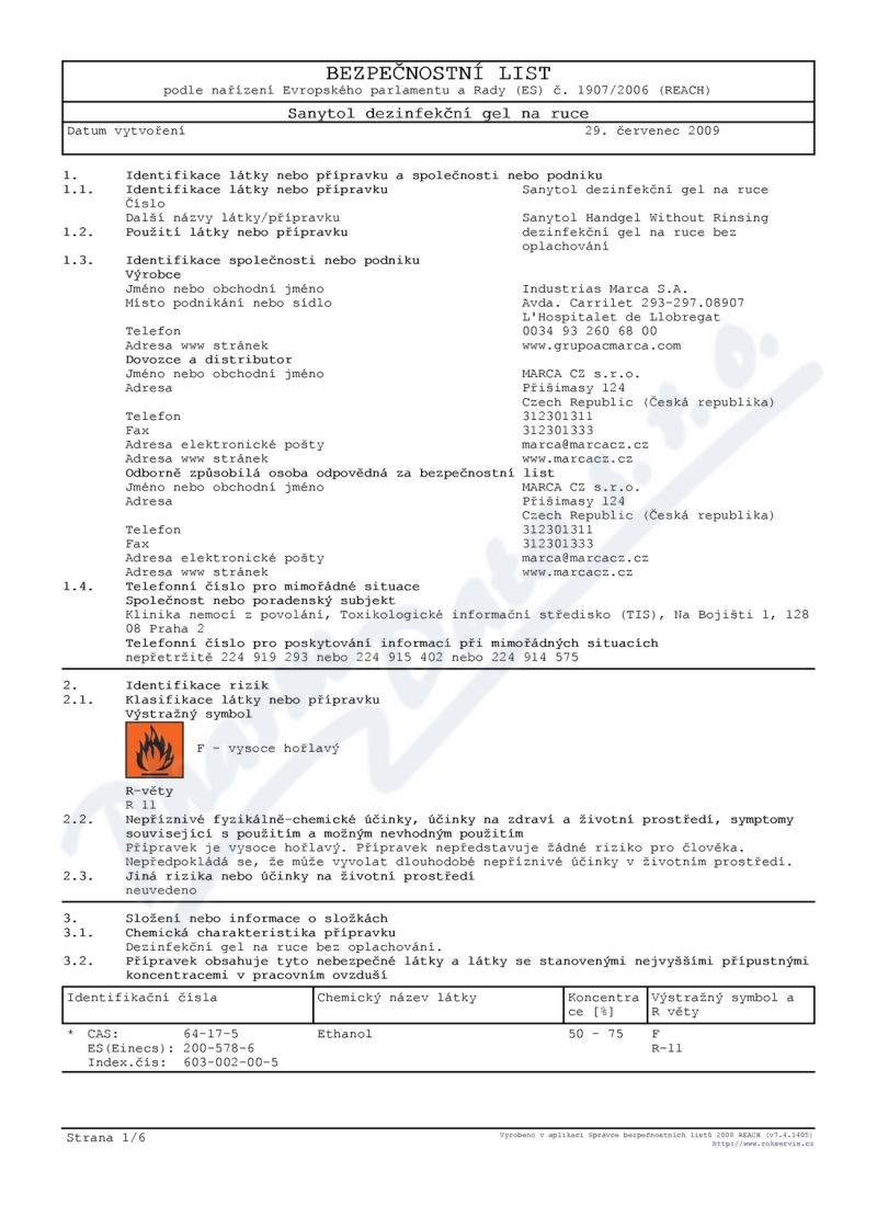 6 strany bezpečnostních listů: strana 1, strana 2, strana 3, strana 4, strana 5, strana 6,