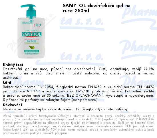 SANYTOL dezinfekční gel na ruce 250ml