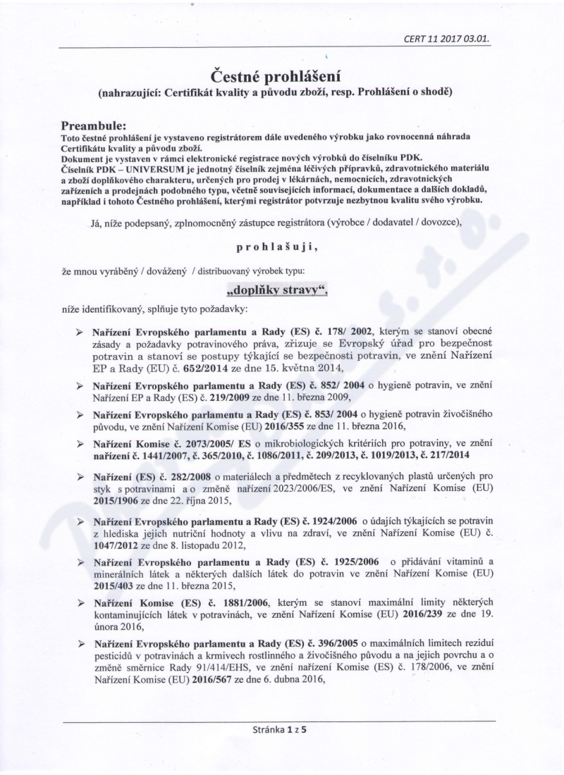 5 strany čestného prohlášení: strana 1, strana 2, strana 3, strana 4, strana 5,