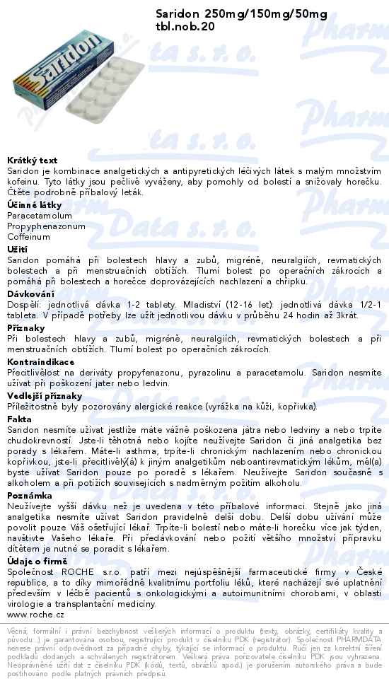 Saridon 250mg/150mg/50mg tbl.nob.20
