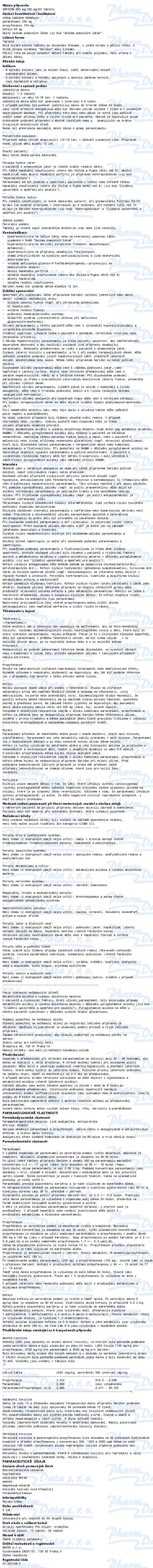 Obsahuje: PARACETAMOL, KOMBINACE KROMĚ PSYCHOLEPTIK