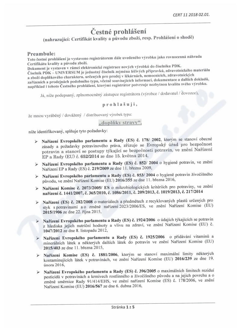 5 strany čestného prohlášení: strana 1, strana 2, strana 3, strana 4, strana 5,