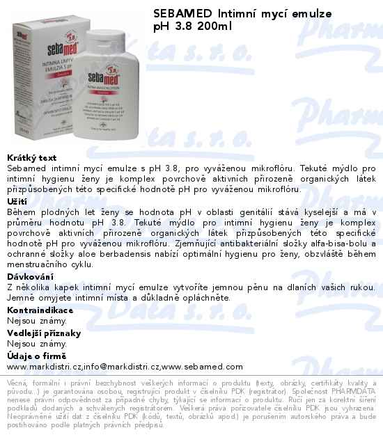 SEBAMED Intimní mycí emulze pH 3.8 200ml