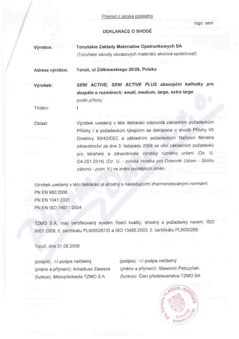 Výrobce: TORUNSKE ZAKLADY MATERIALOW OPATRUNKOVYCH S.A.
