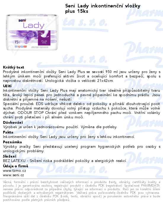 Seni Lady inkontinenční vložky plus 15ks