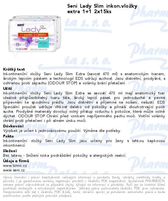 Seni Lady Slim inkon.vložky extra 1+1 2x15ks