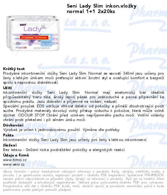 Seni Lady Slim inkon.vložky normal 1+1 2x20ks