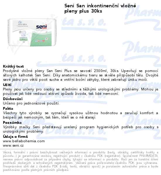 Seni San inkontinenční vložné pleny plus 30ks
