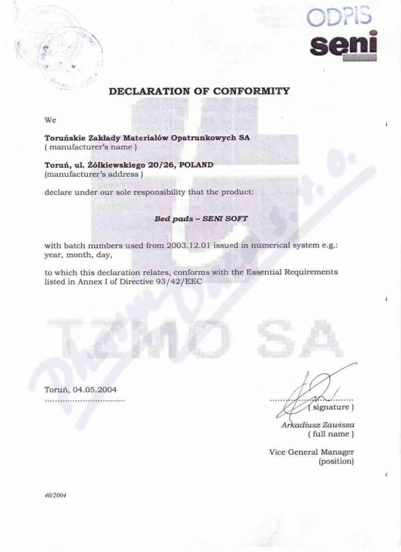 Výrobce: TORUNSKE ZAKLADY MATERIALOW OPATRUNKOVYCH S.A.