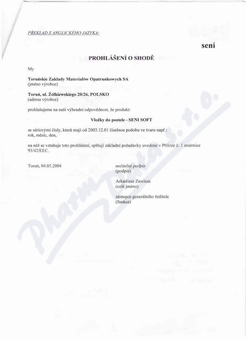 2 strany prohlášení o shodě: strana 1, strana 2,