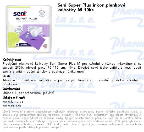Seni Super Plus inkon.plenkové kalhotky M 10ks