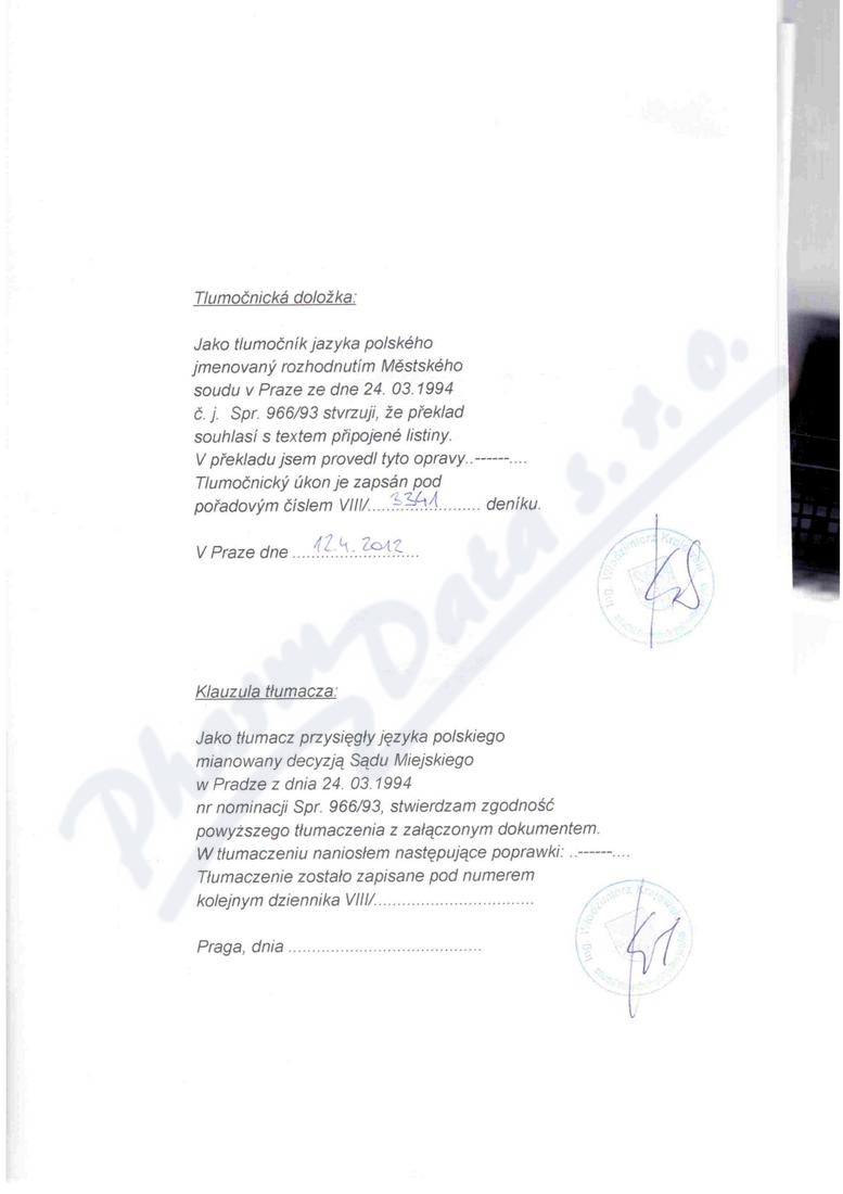 3 strany prohlášení o shodě: strana 1, strana 2, strana 3,