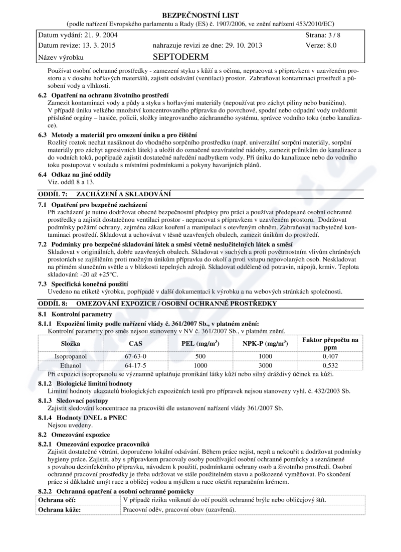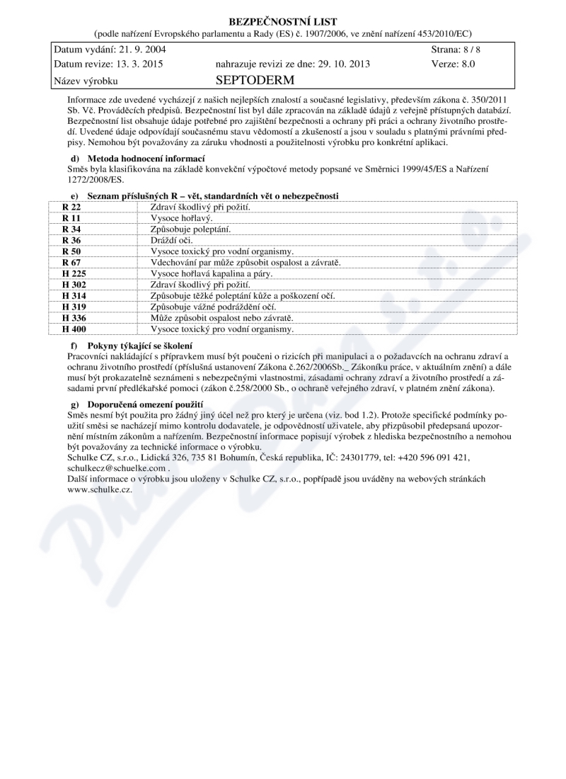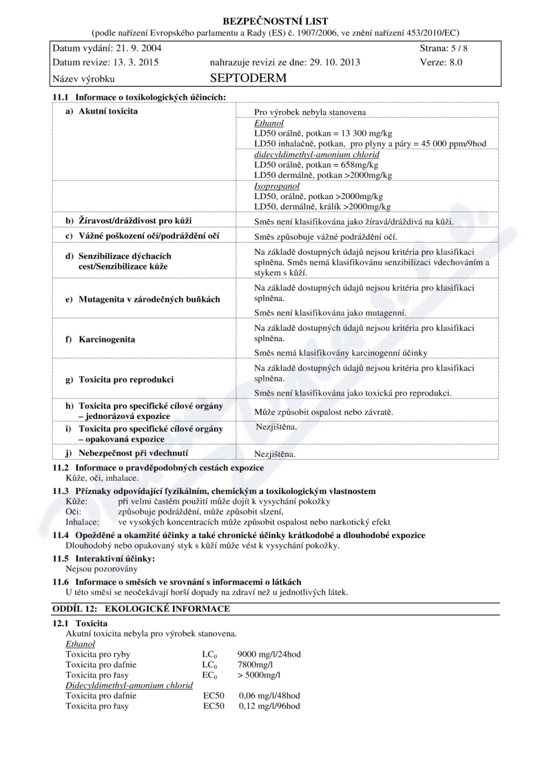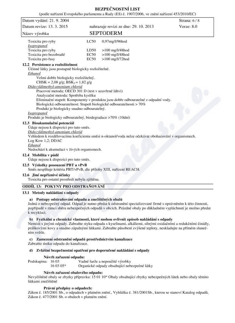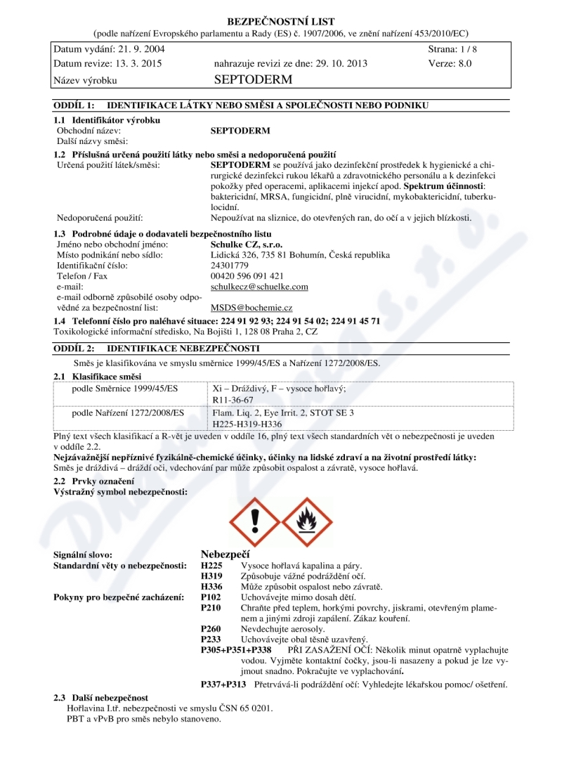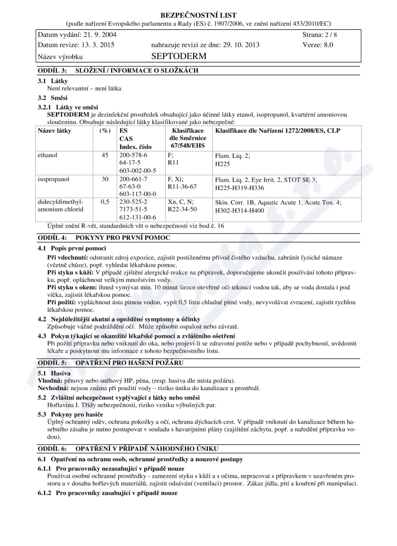 8 strany bezpečnostních listů: strana 1, strana 2, strana 3, strana 4, strana 5, strana 6, strana 7, strana 8,