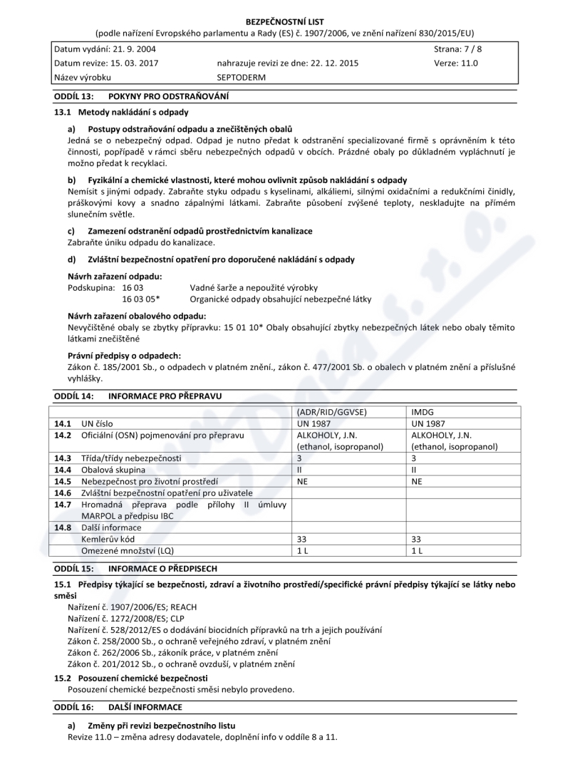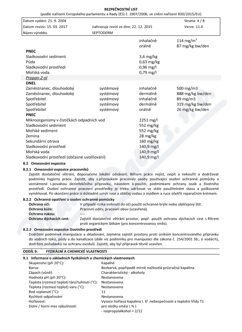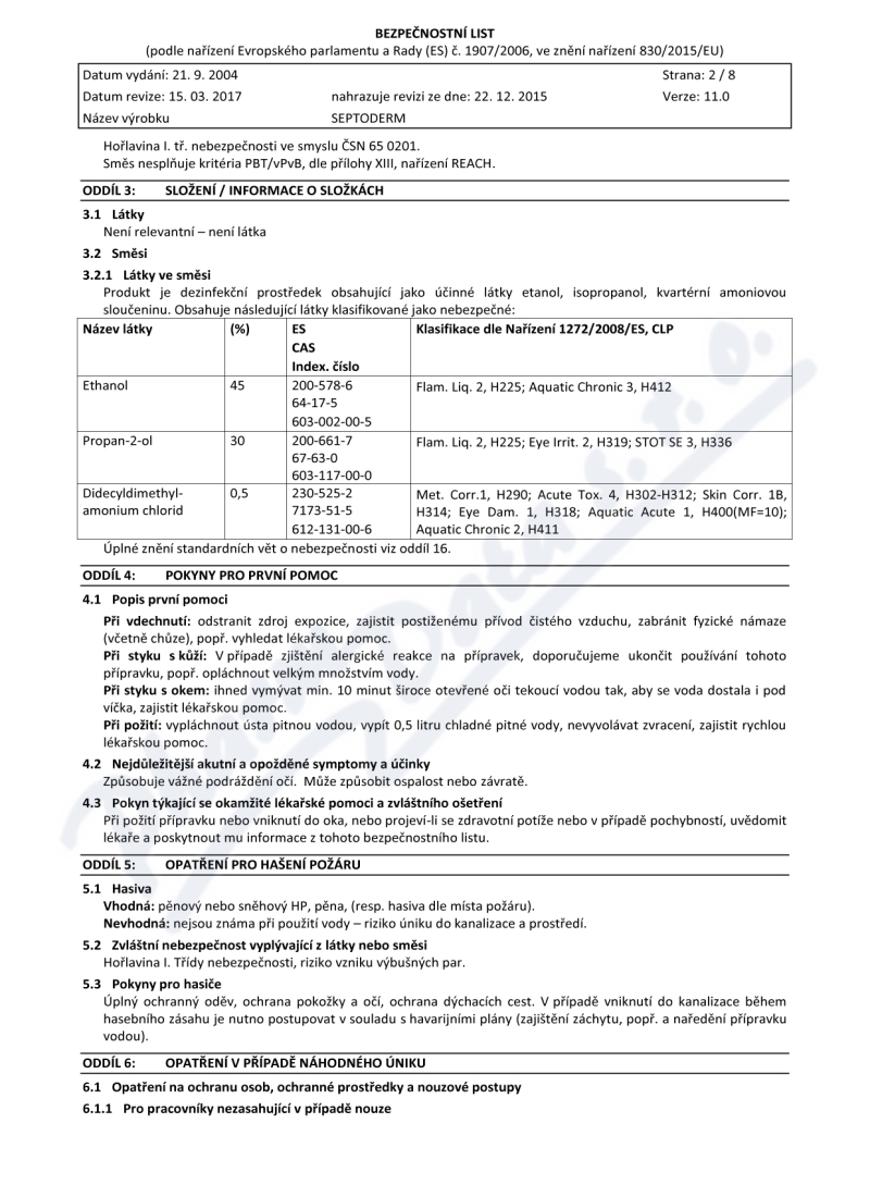 8 strany bezpečnostních listů: strana 1, strana 2, strana 3, strana 4, strana 5, strana 6, strana 7, strana 8,