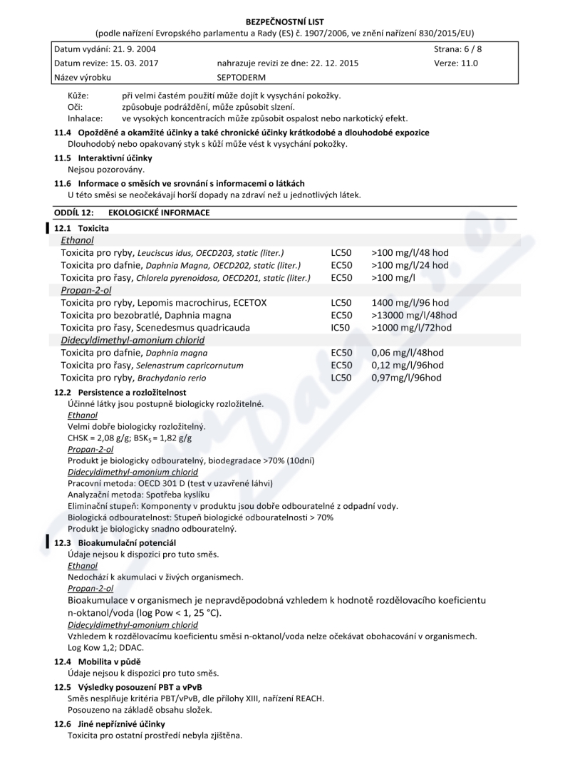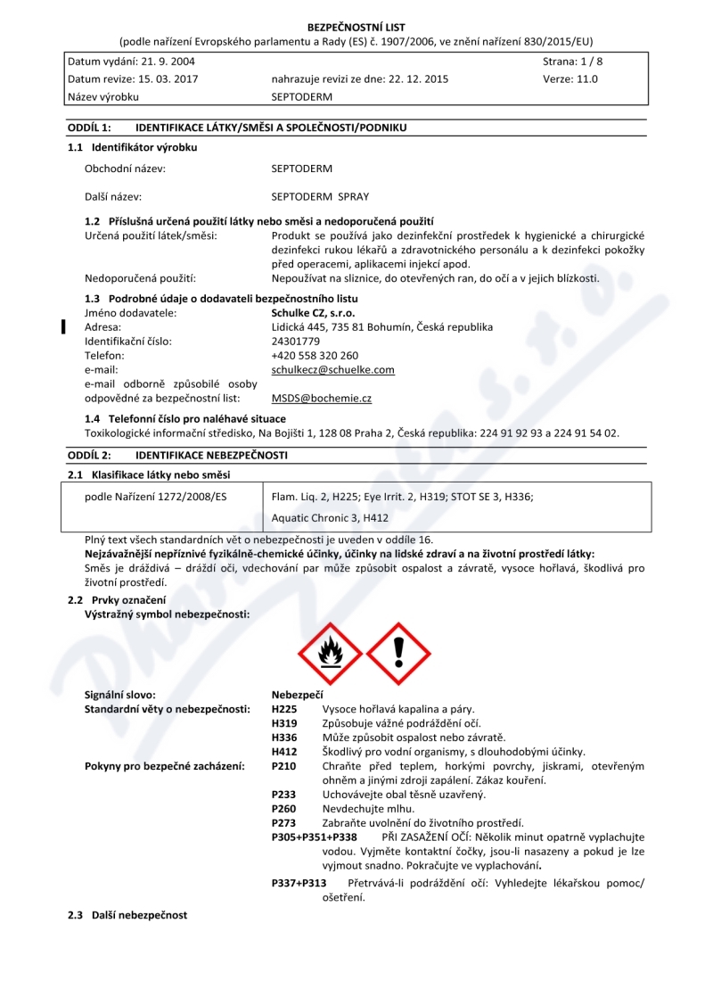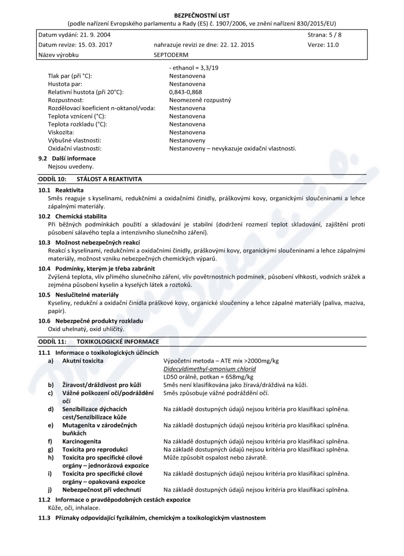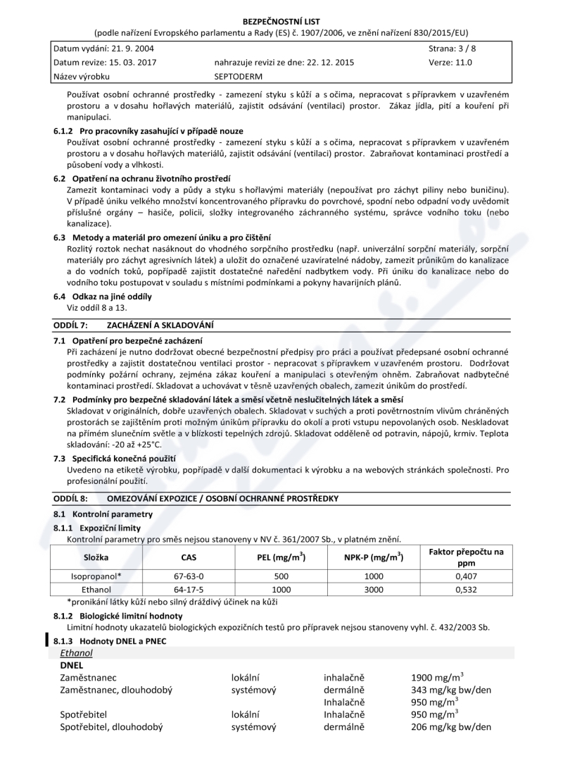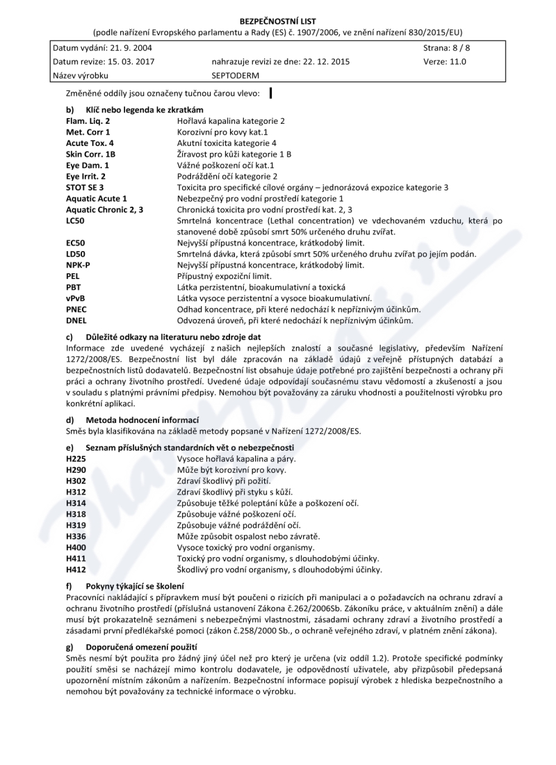 8 strany bezpečnostních listů: strana 1, strana 2, strana 3, strana 4, strana 5, strana 6, strana 7, strana 8,