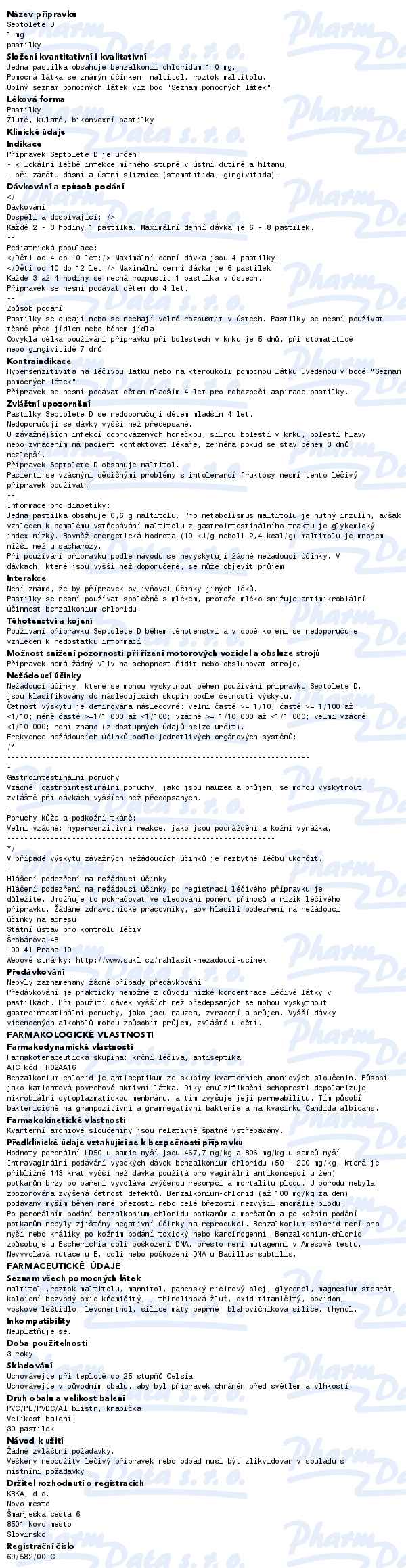 Septolete D 1mg pas.30 II