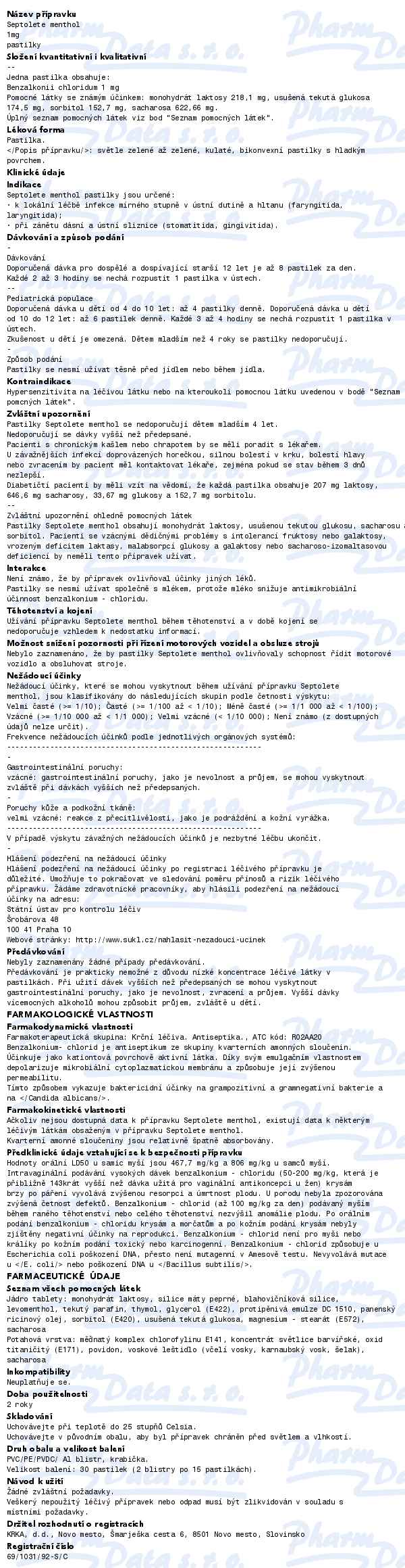 Septolete menthol 1mg pas.30 II