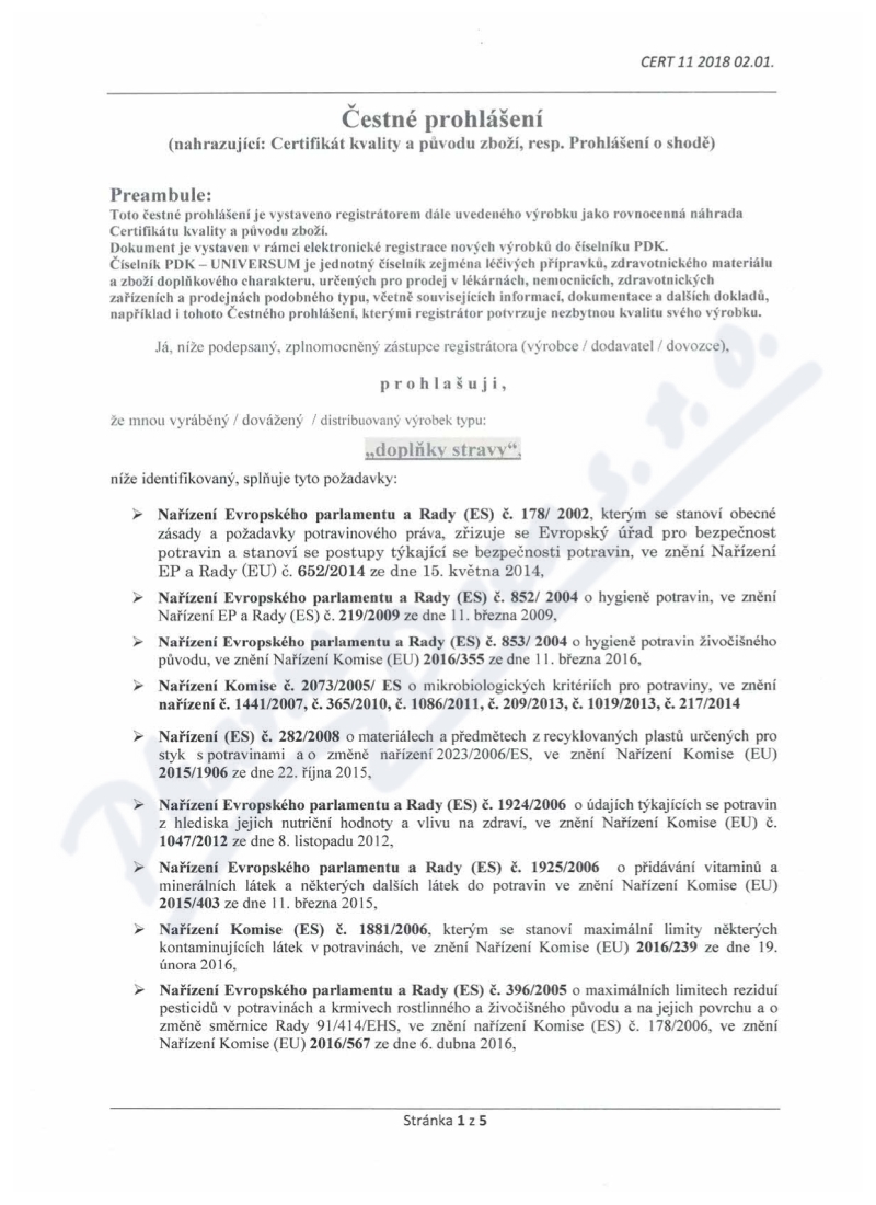 5 strany čestného prohlášení: strana 1, strana 2, strana 3, strana 4, strana 5,