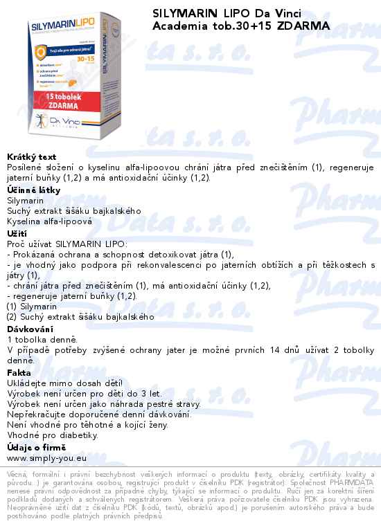 SILYMARIN LIPO Da Vinci Academia tob.30+15 ZDARMA