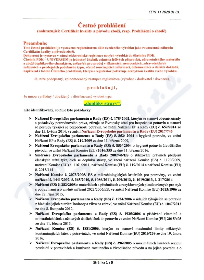 5 strany čestného prohlášení: strana 1, strana 2, strana 3, strana 4, strana 5,