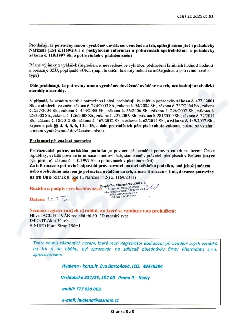 Výrobce: Simply You Pharmaceuticals a.s.