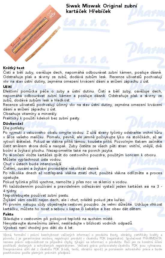 Siwak Miswak Original zubní kartáček Hřebíček
