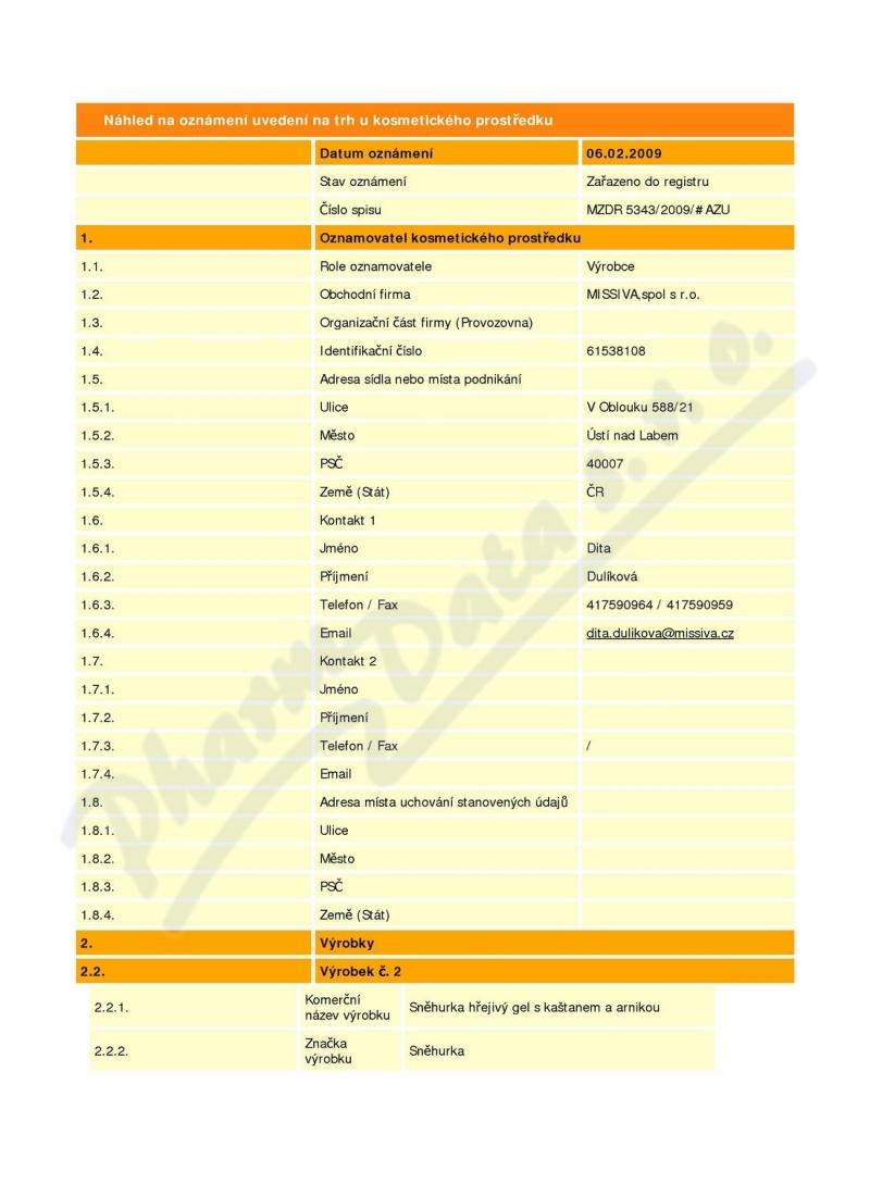 Výrobce: MISSIVA S.R.O.
