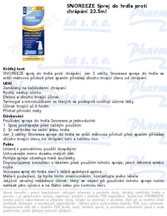 SNOREEZE Sprej do hrdla proti chrápání 23.5ml