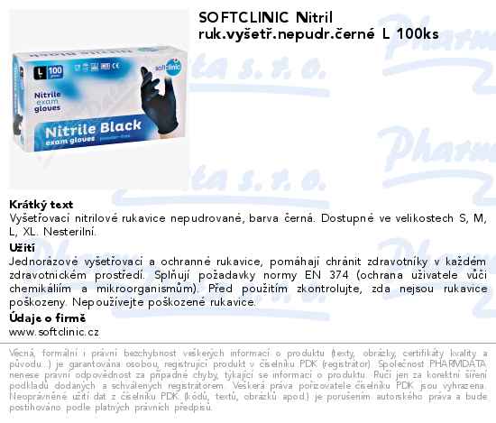 SOFTCLINIC Nitril ruk.vyšetř.nepudr.černé L 100ks