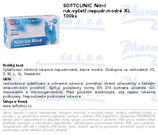 SOFTCLINIC Nitril ruk.vyšetř.nepudr.modré XL 100ks
