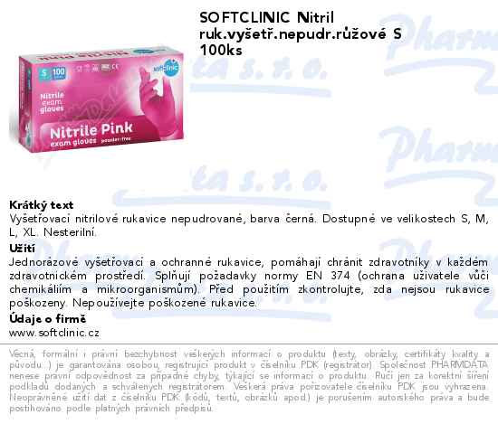 SOFTCLINIC Nitril ruk.vyšetř.nepudr.růžové S 100ks