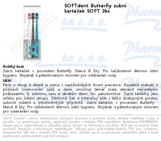 SOFTdent Butterfly zubní kartáček SOFT 3ks