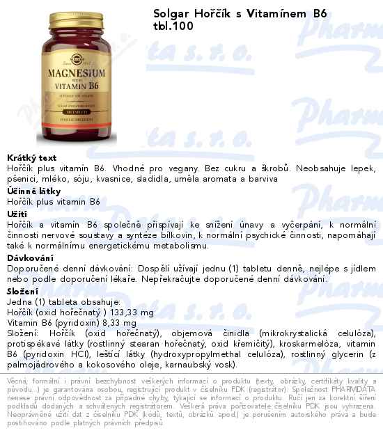 Solgar Hořčík s Vitamínem B6 tbl.100
